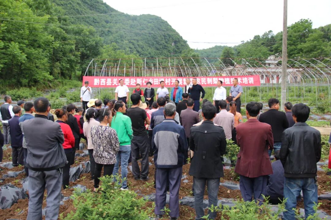 △在黔西市新仁乡田坝村开展新型农民刺梨种植技术培训