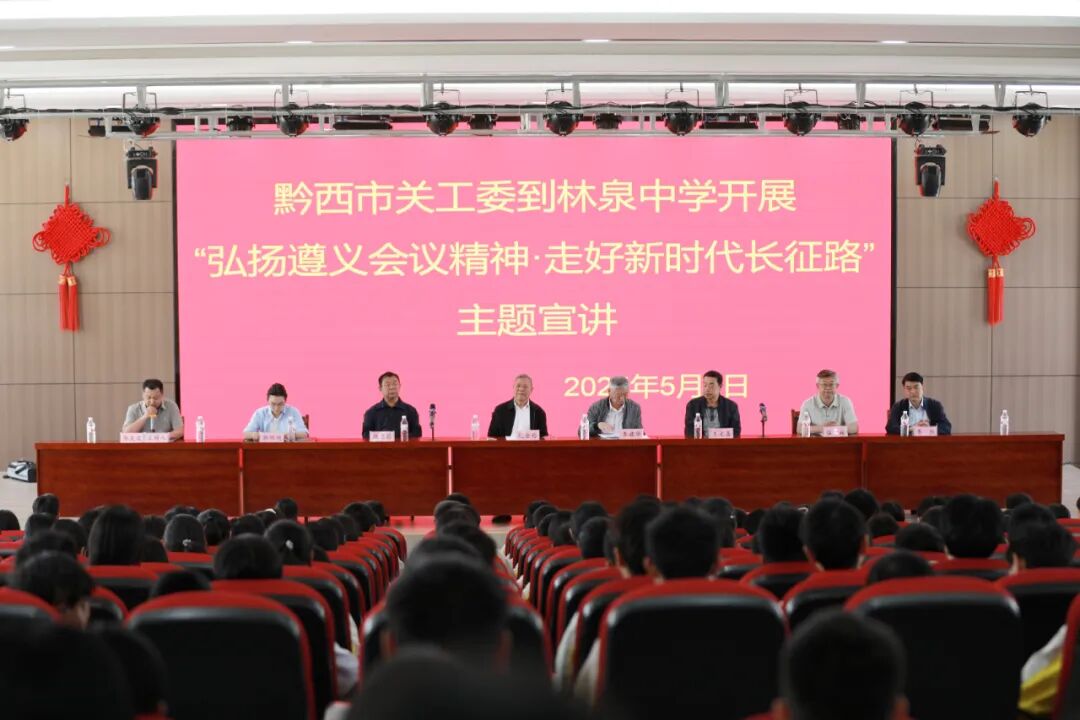 △2025年5月9日,贵州省黔西市关工委的老同志们在林泉中学开展“弘扬遵义会议精神•走好新时代长征路”主题宣讲