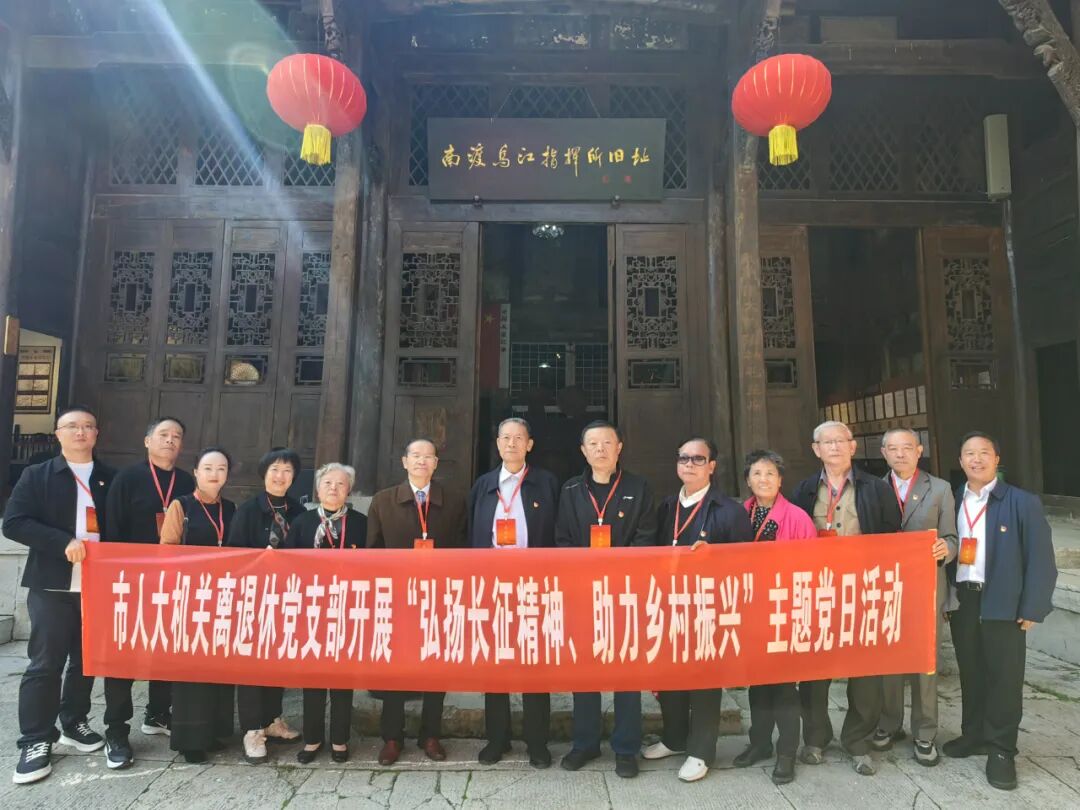10月28日,毕节市人大常委会机关离退休党支部组织党员前往金沙县沙土镇中央红军南渡乌江指挥部旧址,开展“弘扬长征精神、助力乡村振兴”主题党日活动。